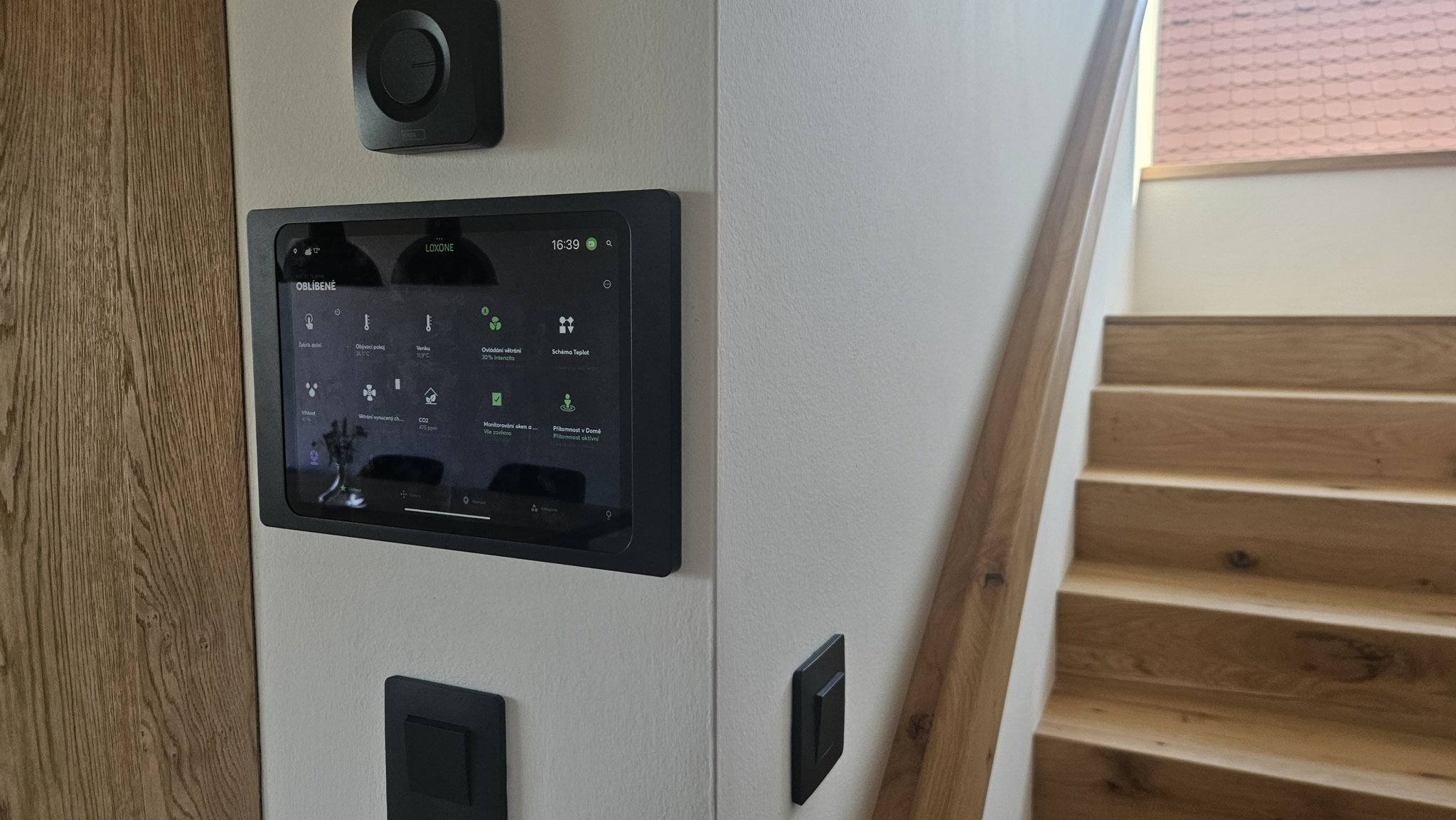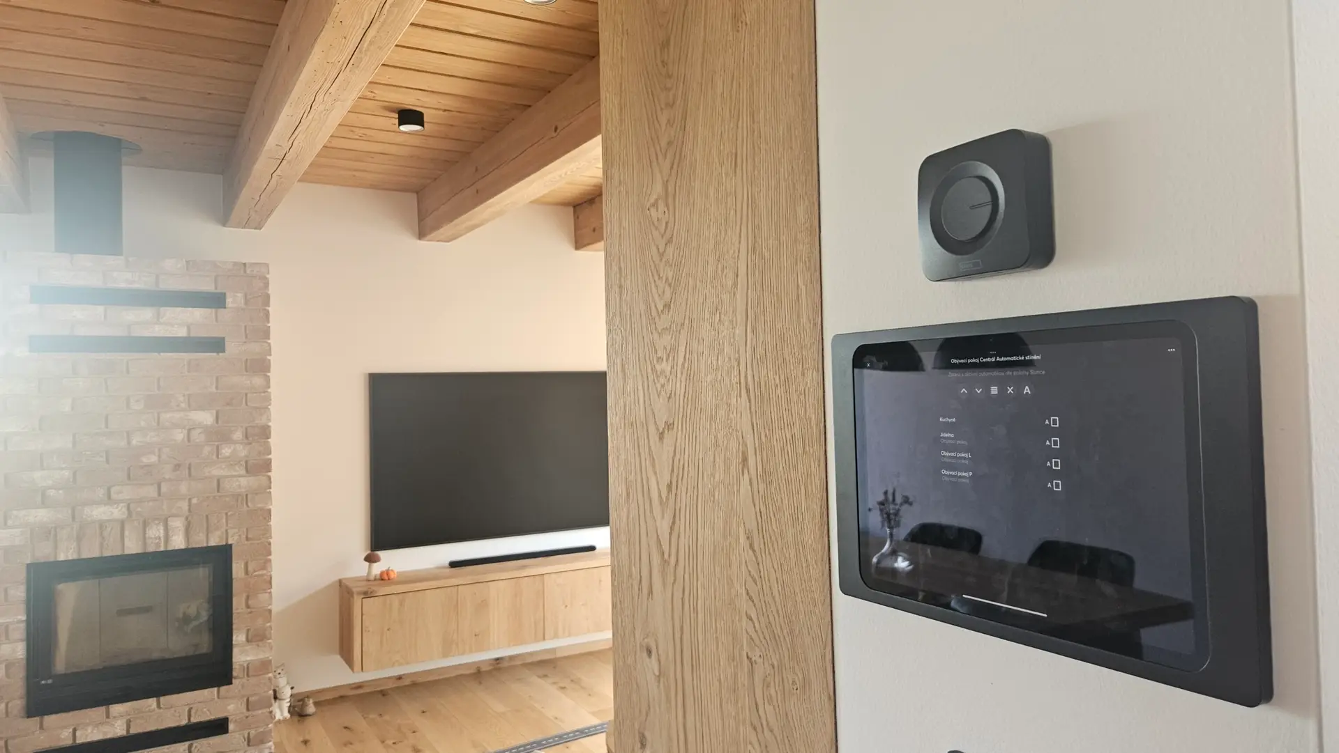 Centrální řídicí systém pro automatizaci domácnosti. Ovládá osvětlení, stínění, topení, větrání, zabezpečení, audiosystém i přístupové prvky. Vše funguje plně automaticky, s možností ovládání přes aplikaci.